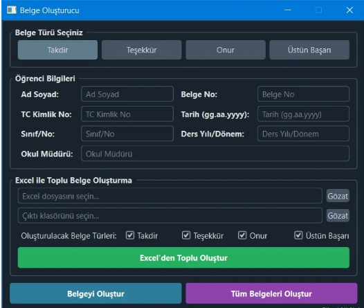 Kimin ne zaman hangi belgeye ihtiyacı olacağı asla bilinmez. Farklı nedenlerle bu ihtiyaç doğabileceği gibi belgenin hedefindeki kişi de değişebilir. Önemli olan ne kadar gerçekçi bir belge sunduğunuzdur, tabii belgeniz gerçek değilse… Belge Oluşturucu indir takdir, teşekkür gibi çeşitli akademik evrakları kolayca düzenle.