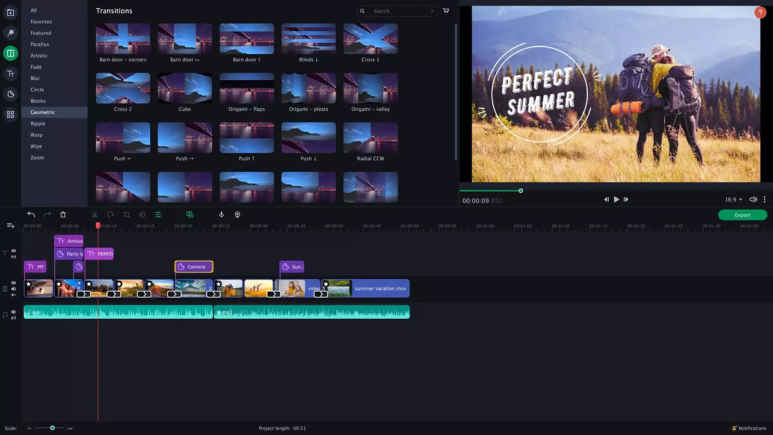 Movavi Slideshow Maker 2025, hem hızlı işleme hem de filtre uygulama özelliği mevcuttur. Videolarınız için kişisel video başlıkları, altyazı ekleme özelliği, geçişler, arka plana sevdiğiniz müzik parçalarını ekleme, hızlı veya yavaş video süresi ayarlama gibi birçok işlemi dilediğinizce değiştirebilirsiniz. İster ses klipleri, ister doğum günü videoları, isterseniz de sosyal medya hesaplarınız üzerinde paylaşabileceğiniz kısa medya içerik videoları yapabilirsiniz.