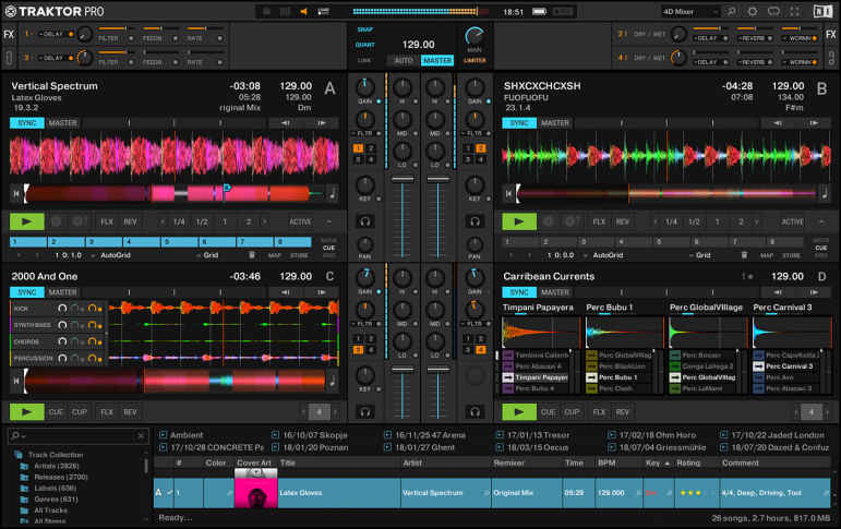 Native Instruments Traktor Pro ile dalga formlarını kontrol edebilir, algoritmaları değiştirebilir ve remiksler yapabilirsiniz. Senkronize edebileceğiniz aktif seçenekler, esnek araçlar, geçiş filtreleri ve ses yükseltme ayarları da mevcuttur. DJ’ler için etkili bir çalışma ortamına sahiptir.